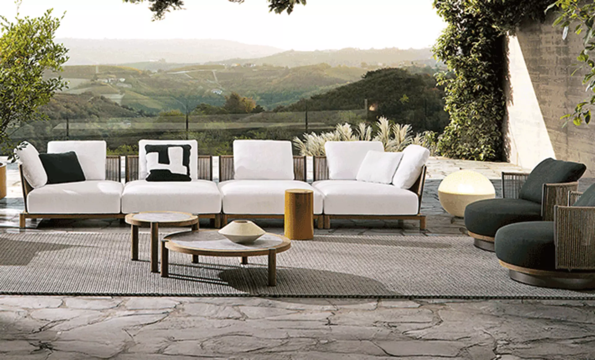 Marken wie Minotti, B&B Italia oder Cassina entwickeln ihre Outdoor-Kollektionen mit derselben Konsequenz wie ihre Interior-Linien. Proportionen, Materialien, Übergänge – alles ist darauf ausgelegt, Räume zu schaffen, die funktionieren und zugleich eine besondere Ruhe ausstrahlen.